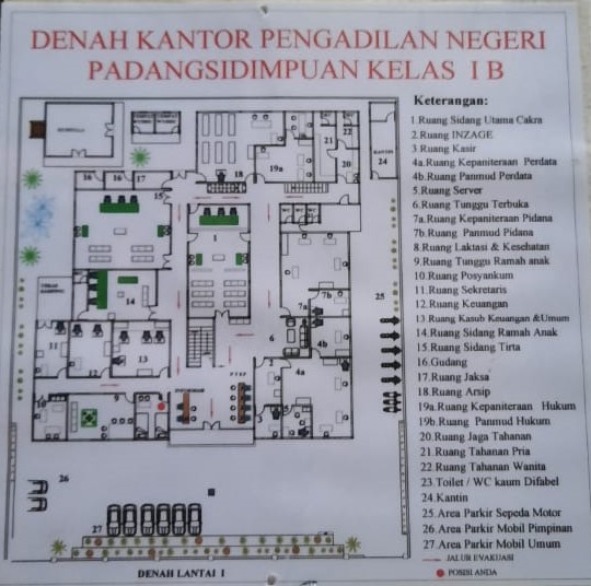 Gedung Pengadilan Negeri Padangsidimpuan mempunyai 2 lantai.